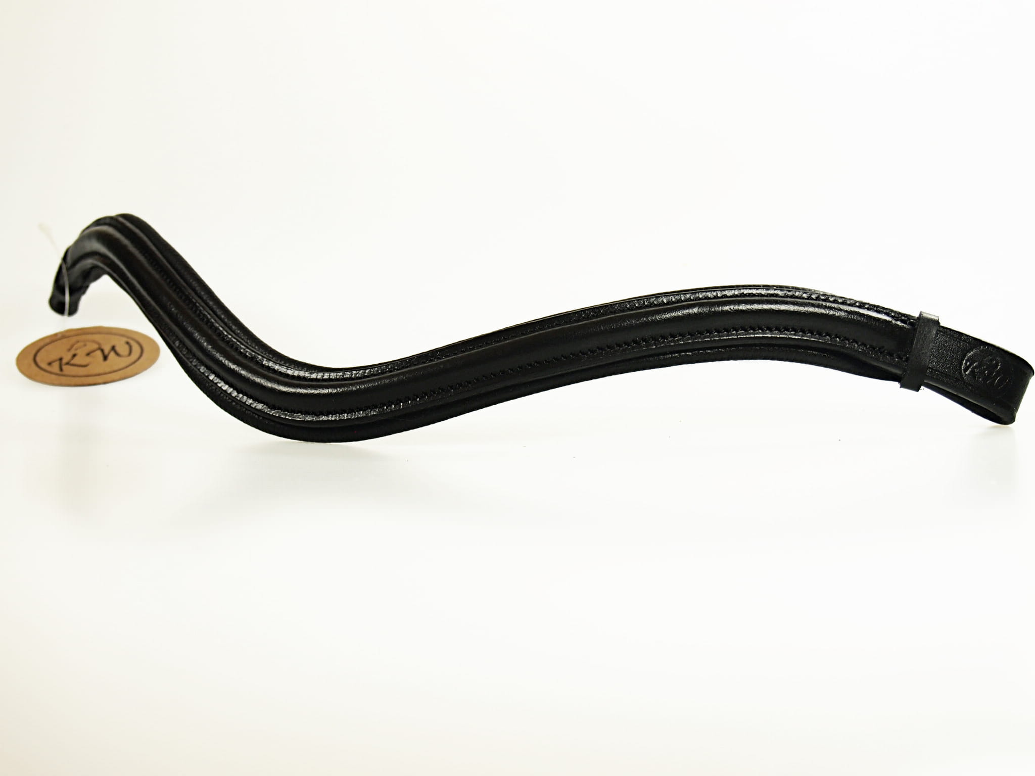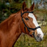 Czarne ogłowie anatomiczne z klasycznym, prostym, opadającym naczółkiem bez ozdób, podszytym czarną skórą. Nachrapnik i profilowany nagłówek zostały dodatkowo podszyte miękką skórą, dla lepszego komfortu. Ogłowie posiada okucia w kolorze srebrnym.