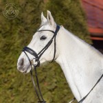 Czarne ogłowie z opadającym naczółkiem ozdobionym jednym rzędem czarnych kryształków oraz szerokim, matowym nachrapnikiem. Profilowany nagłówek i nachrapnik zostały miękko podszyte czarną skórą.