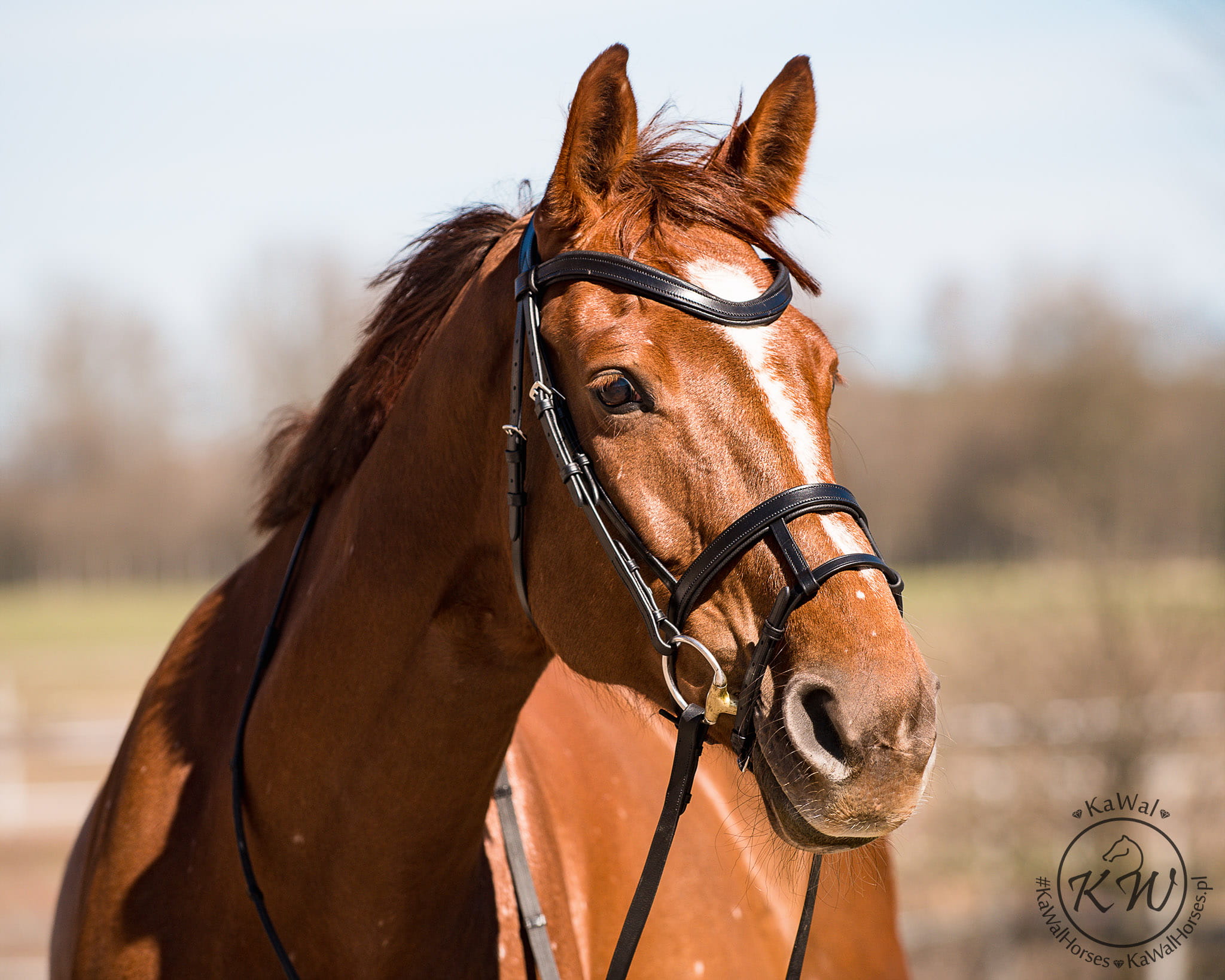Czarne ogłowie z podwójnym nachrapnikiem. Ogłowie posiada szeroką, profilowaną, miękko podszytą, anatomiczną część potyliczną, zaprojektowana specjalnie dla koni bardzo wrażliwych na ucisk w okolicy pierwszych kręgów szyjnych. Nagłówek posiada przerwę w środkowej części podszycia, leżącej nad kręgosłupem, co redukuje nacisk na potylicę. Podwójny nachrapnik jest połączeniem nachrapnika angielskiego z hanowerskim.